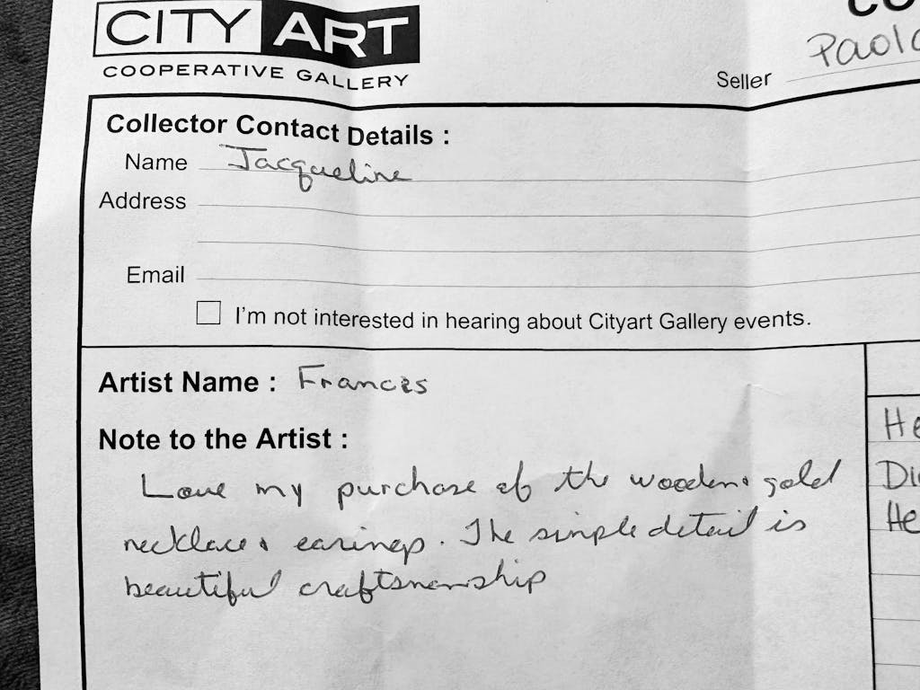 I came into the gallery to buy a gift for a friend and fell in love with your jewelry. I also eneded up buying myself earrrings + necklace too (a total treat!)